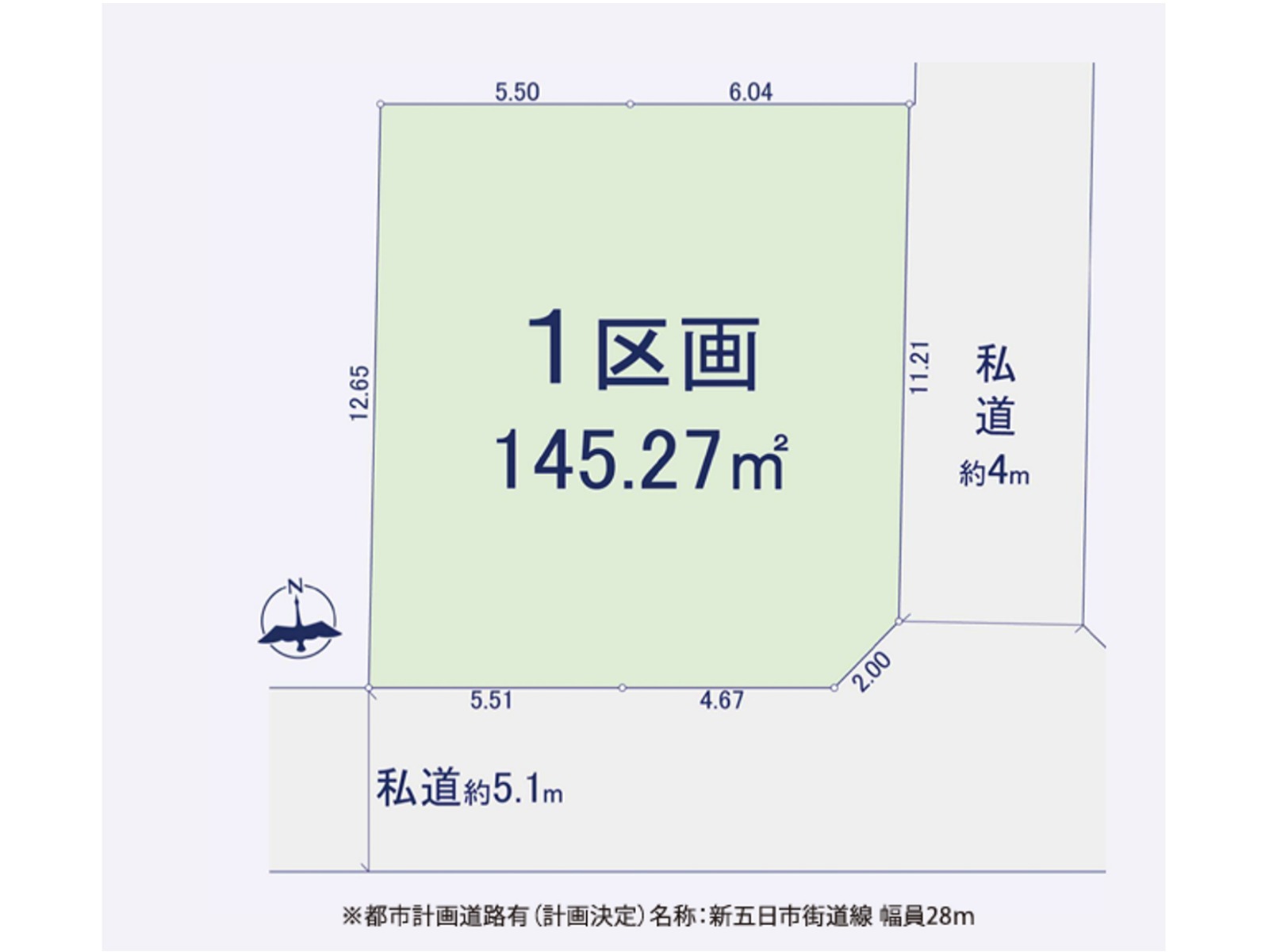 都市計画道路有(計画決定)名称:新五日市街道線幅員28m |