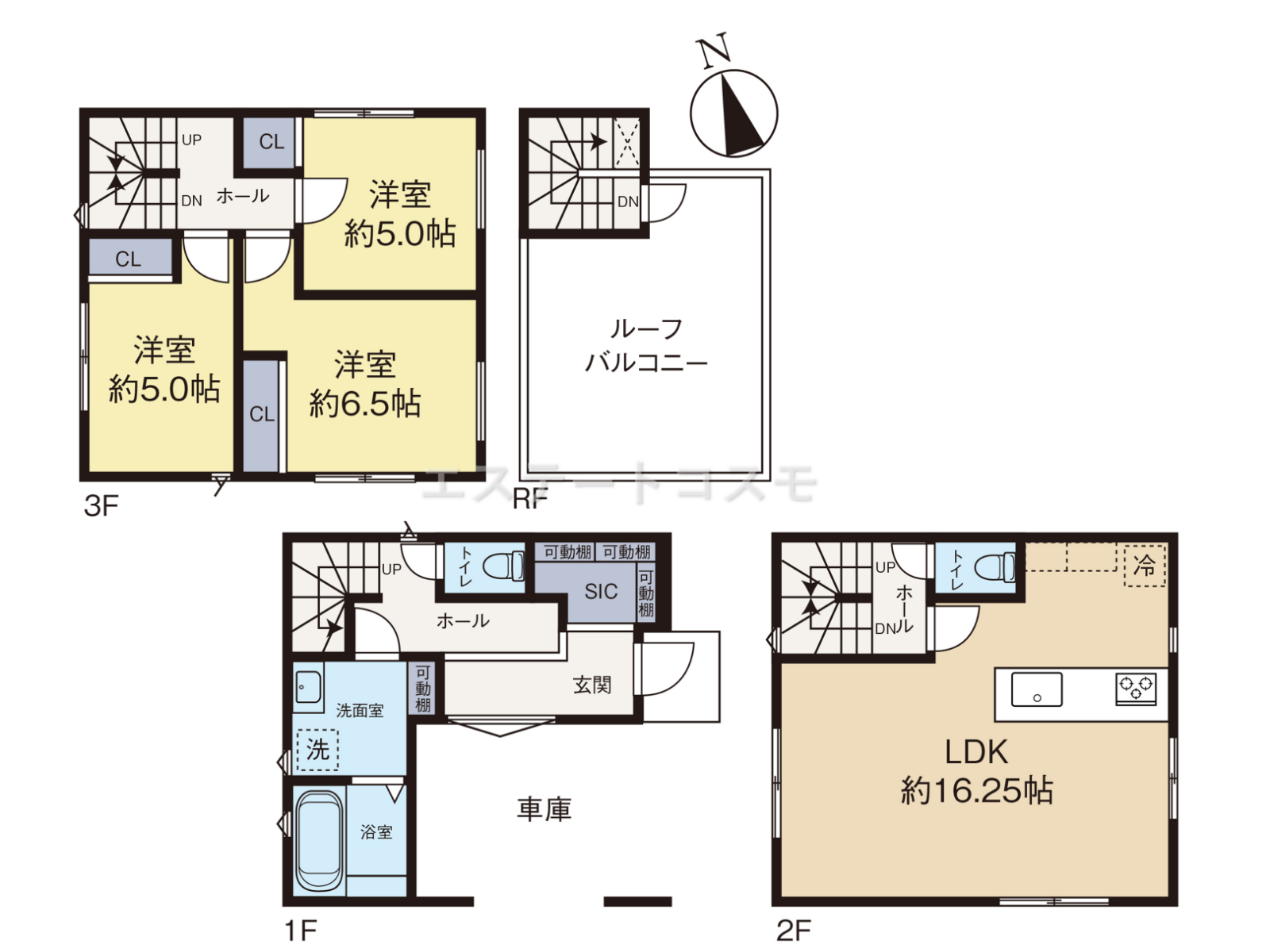 3LDK(+ルーフバルコニー・車庫) |